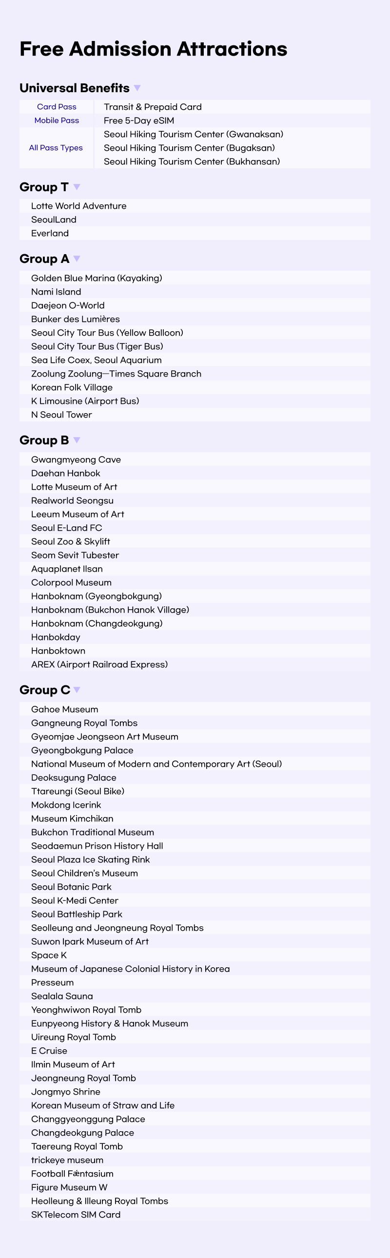 In addition to the attractions, the pass also offers you discounts on a variety of services, including restaurants and stores, as well as access to convenient services such as airport shuttles. You'll also receive a free 5-day eSIM so that you can stay connected during your stay in Seoul.